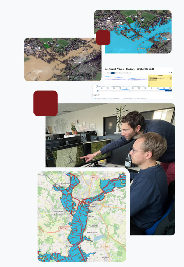 Alors que les inondations se déplaçaient progressivement de Rennes à Redon, les équipes impliquées (principalement SERTIT et CS) ont réussi à produire 13 cartes de suivi rapide en 4 jours, à un rythme moyen d’une carte toutes les 6 heures. Ces cartes comprenaient des contours précis des zones inondées et l’état de la circulation, basés sur des données satellites SAR et optiques. Elles ont été utilisées par le COGIC et les services d’urgence locaux pour coordonner leurs efforts d’aide aux populations.